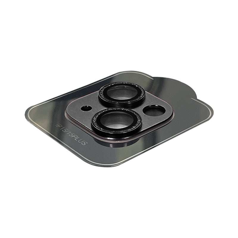 Uniqkart For iPhone 15 / 15 Plus Tempered Glass Camera Lens Protector Glitter Anti-scratch Rear Lens Film - Black