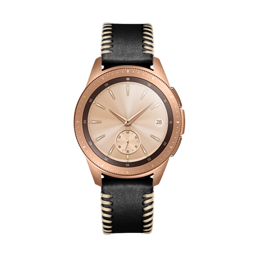 20mm Pork Ribs Style Genuine Leather Coated Smart Watch Strap for Samsung Galaxy Watch 42mm - Black