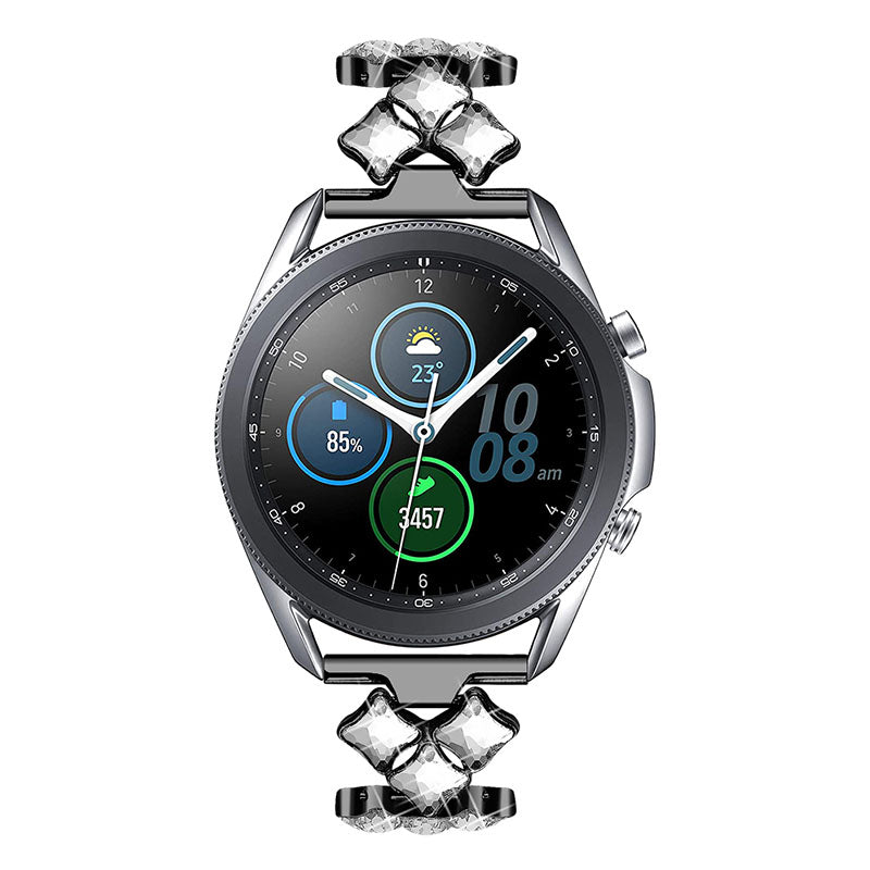 22mm Replacement Bracelet Watch Band Rhombus Rhinestone Stainless Steel Metal Wristband Strap for Samsung Galaxy Watch3 45mm / Watch 46mm - Black