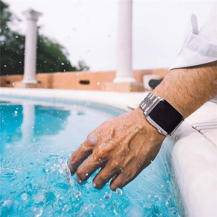5-Beads Stainless Steel Watch Band for Apple Watch Series 10 42mm / 9 8 7 41mm / 6 5 4 SE SE (2022) SE (2023) 40mm / 3 2 1 38mm - Black