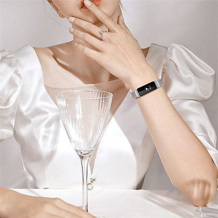 5 Beads Stainless Steel Wrist Strap with Double Buckle Smart Watch Band for Fitbit Inspire 1/2/Inspire HR - Rose Pink Splicing