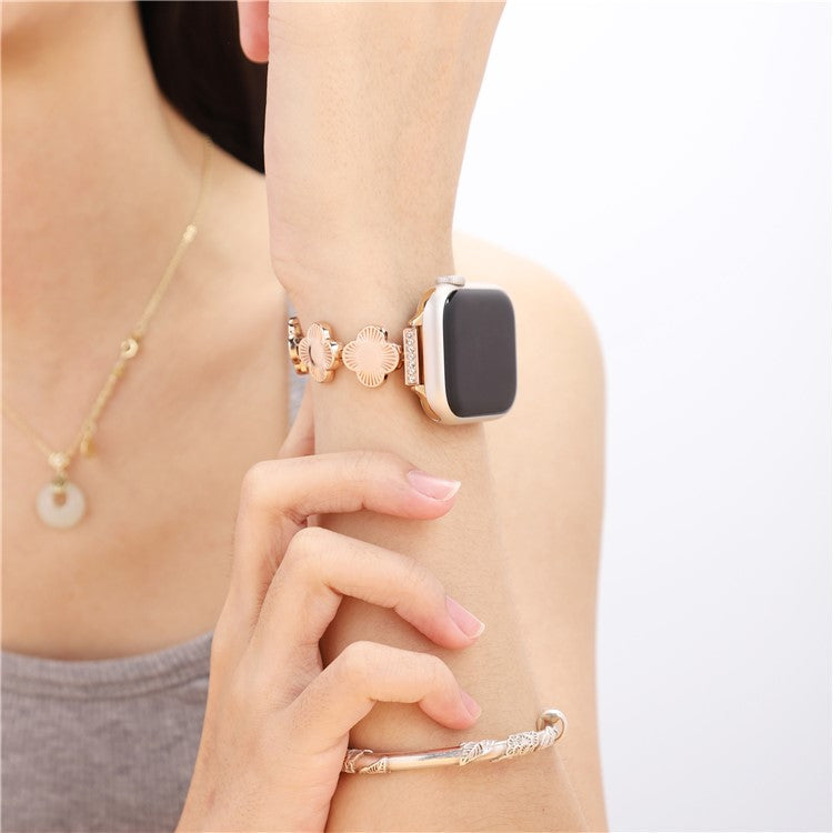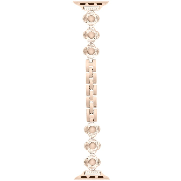 For Apple Watch Series 10 42mm / 9 8 7 41mm / SE (2023) SE (2022) SE 6 5 4 40mm / 3 2 1 38mm Plum Blossom Quick Release Metal Bracelet Watch Strap - Rose Gold
