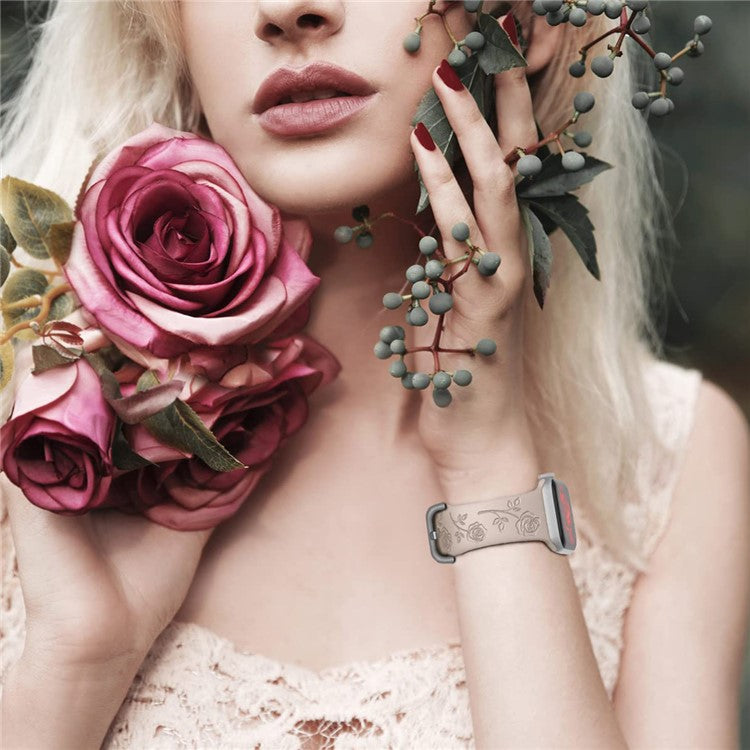 For Apple Watch Series 10 42mm / 9 8 7 41mm / SE (2023) SE (2022) SE 6 5 4 40mm / 3 2 1 38mm Strap Rose Silicone Watch Band - Starlight
