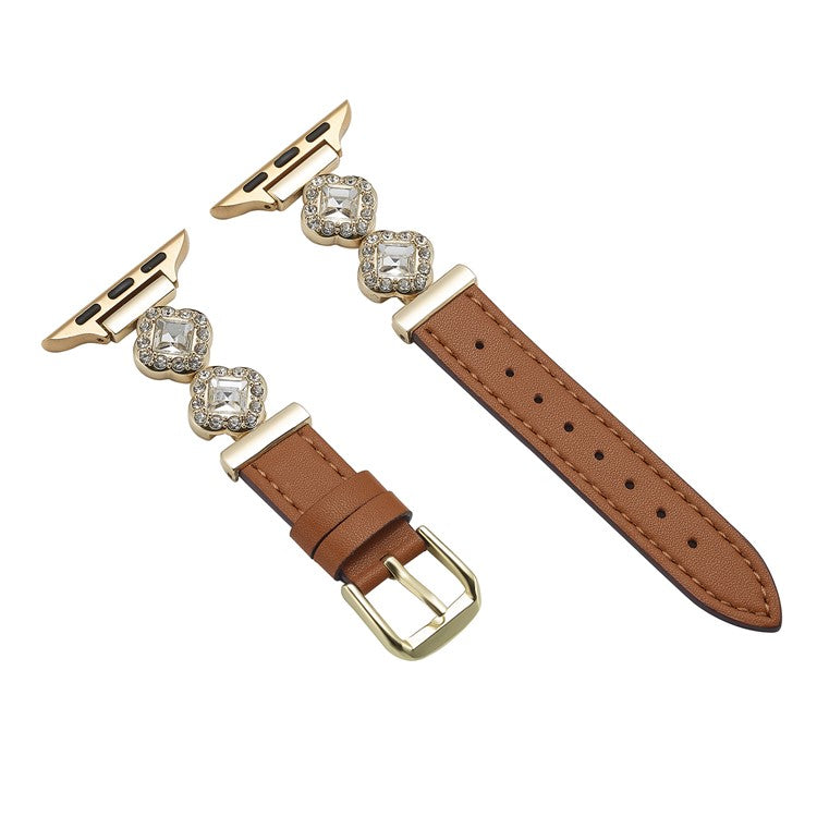 For Apple Watch Series 10 46mm / Ultra 2 Ultra 49mm / 9 8 7 45mm / SE (2023) SE (2022) SE 6 5 4 44mm / 3 2 1 42mm Watch Strap Rhinestone Decor - Brown