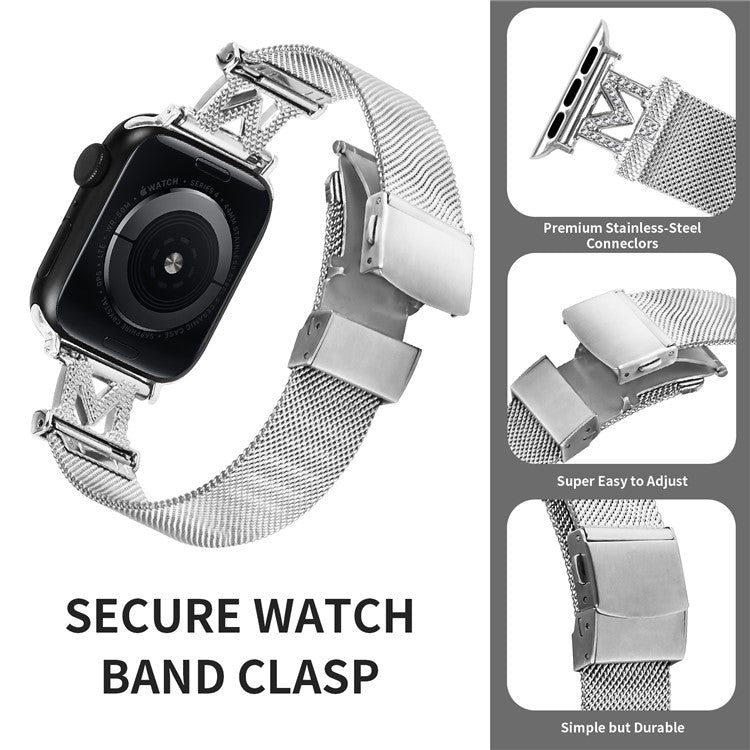 For Apple Watch Series 10 46mm / Ultra 2 Ultra 49mm / Series 9 8 7 45mm / 6 5 4 SE (2023) SE (2022) SE 44mm / 3 2 1 42mm Milanese Mesh Stainless Steel Watch Strap - Silver