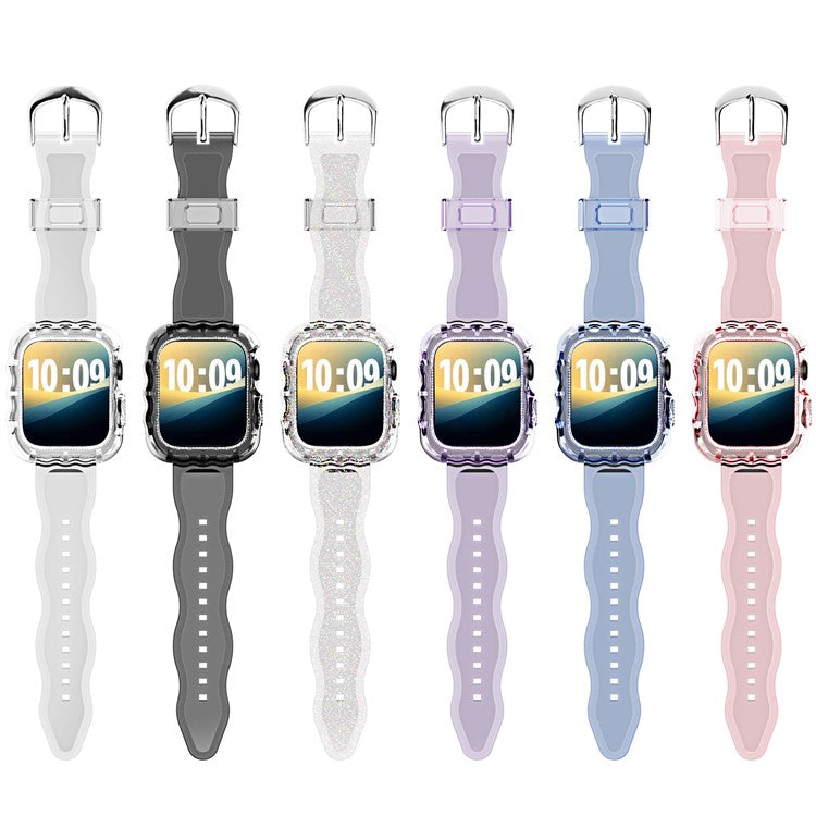 For Apple Watch Series 10 46mm Watch Case with Band Wave Pattern Integrated Watch Strap TPU Adjustable - White Glitter