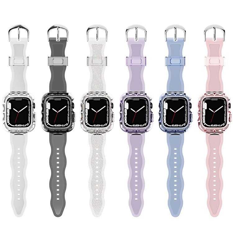 For Apple Watch Series 9 / 8 / 7 41mm / 6 5 4 SE (2022) SE 40mm / 3 2 1 38mm Watch Bands with Case Soft TPU Rugged Wristbands - Transparent