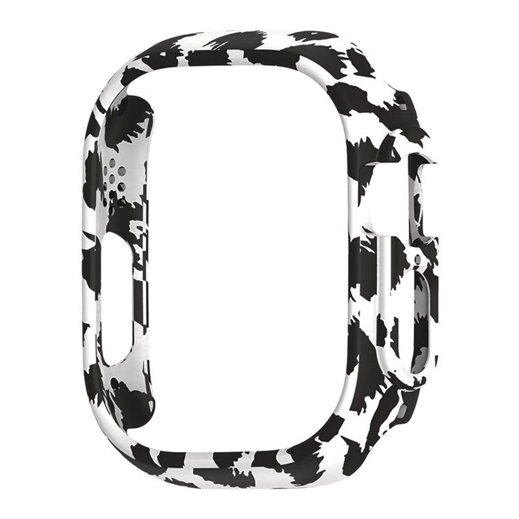 For Apple Watch Ultra 2 49mm / Ultra 49mm Hard PC Frame Cover Electroplating Hollowed-out Anti-Scratch Protective Case - White Leopard Print