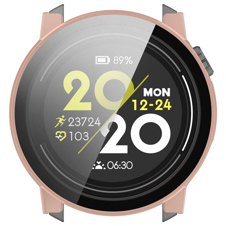 For Coros Pace 3 Protective Case Hard PC Watch Cover with Tempered Glass Screen Protector - Pink