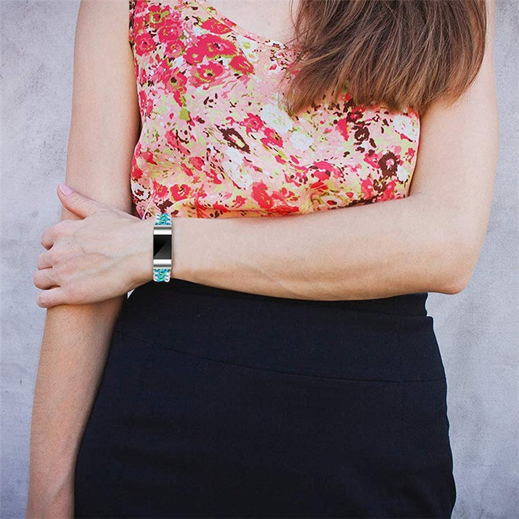For Fitbit Charge 2/Charge 2 HR Pearl+Nylon Woven Adjustable Watch Band Replacement Wrist Strap - Blue
