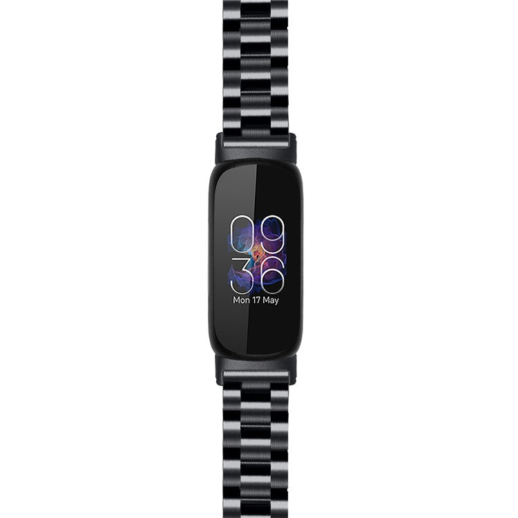 For Fitbit Inspire 3 Stainless Steel Watch Strap 3 Beads Design Replacement Watch Band - Black