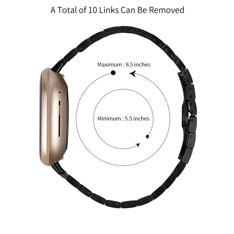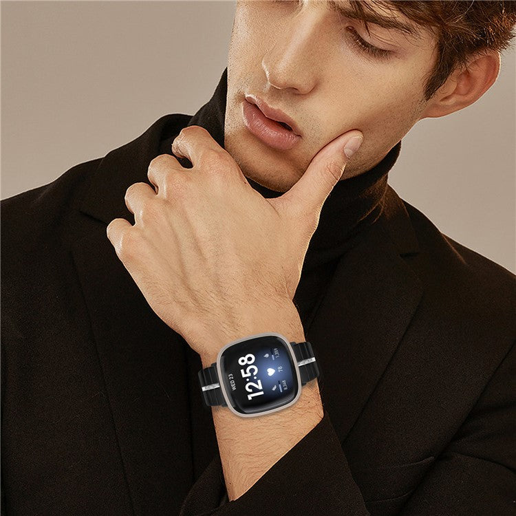 For Fitbit Versa 4 / Sense 2 Stainless Steel Watch Strap Wrist Band Replacement - Black+Silver