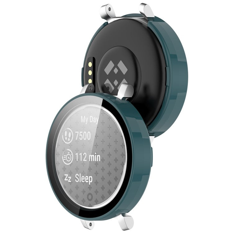 For Garmin Lily 2 Hard PC Watch Protection Case Cover with Tempered Glass Screen Film - Green