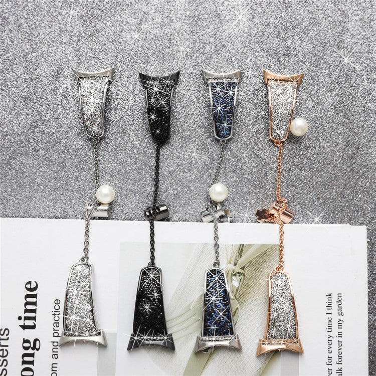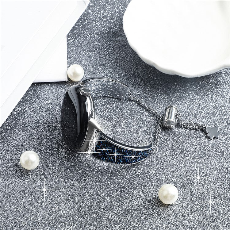 For Google Pixel Watch 3 41mm / Watch 2 / Pixel Watch Rhinestone Decor Bling Metal Chain Band Replacement Bracelet Watch Strap - Blue