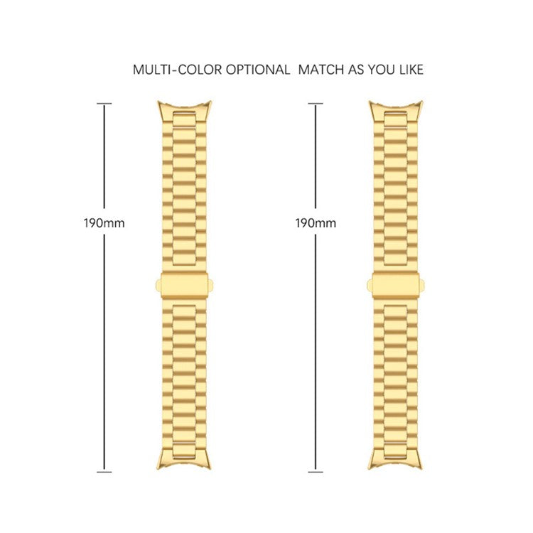 For Google Pixel Watch 3 45mm Watch Band Three Beads Stainless Steel Strap - Gold