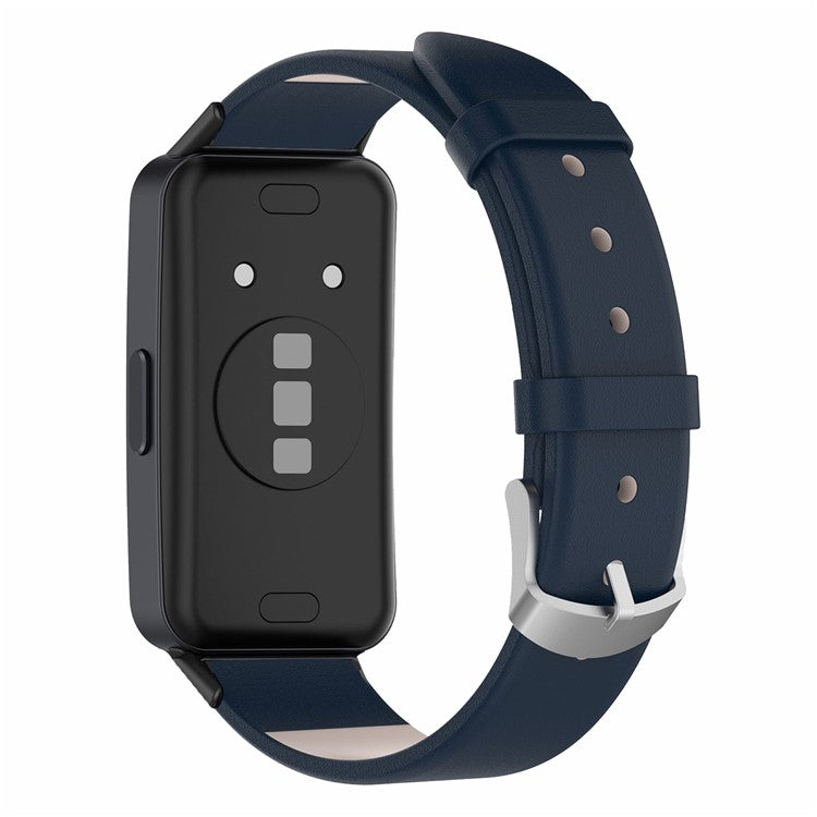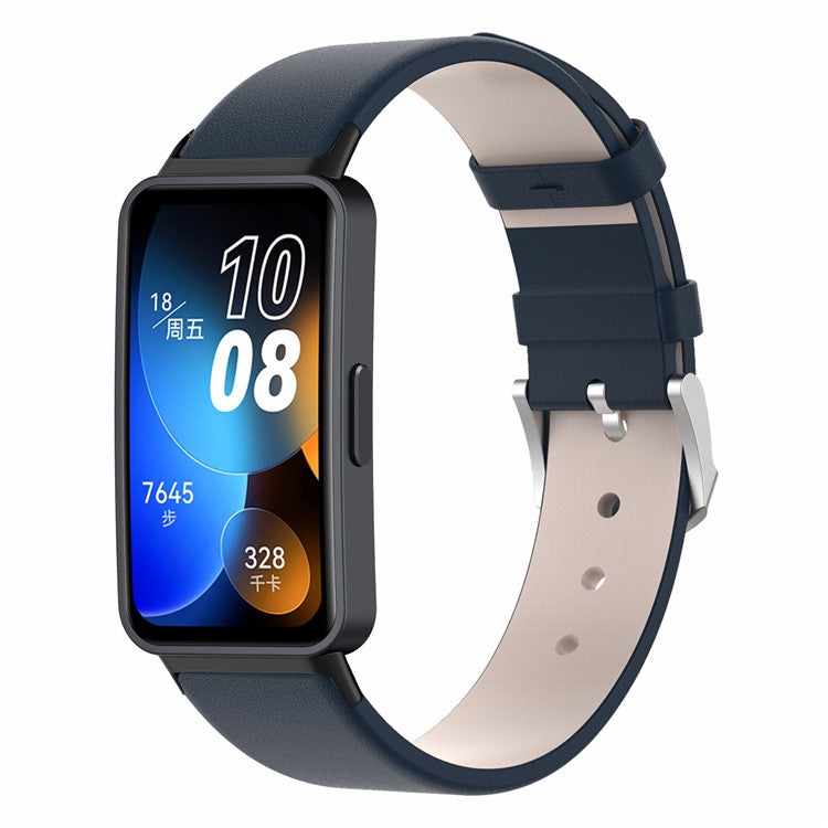 For Huawei Band 8 / Band 8 NFC / Band 9 / Band 9 NFC Watch Band Genuine Cow Leather Replacement Strap - Dark Blue