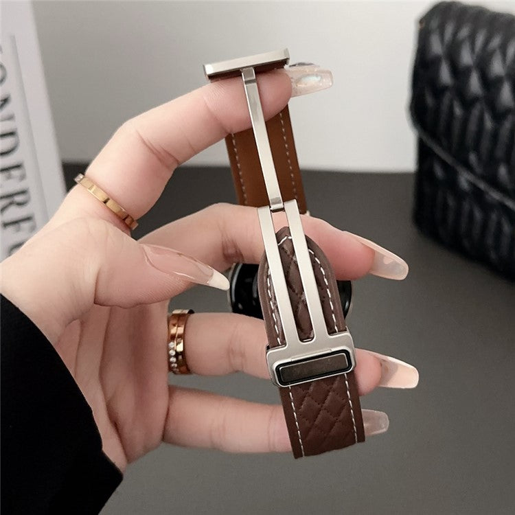 For Huawei Watch GT 4 41mm / Garmin Venu 3S Genuine Cow Leather Band 18mm Magnetic Buckle Strap - Beige
