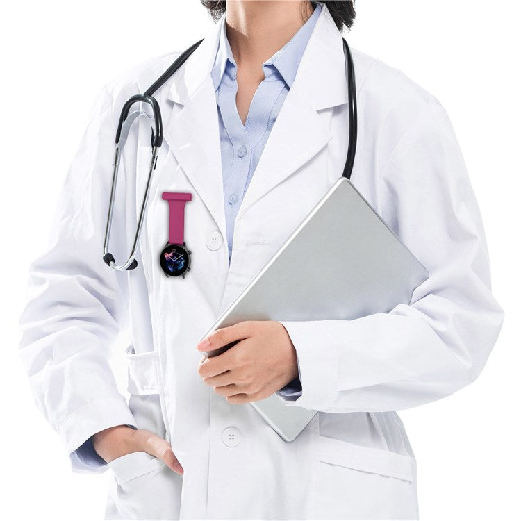 For Huawei Watch GT Runner/Samsung Galaxy Watch3 45mm Pin Style 22mm Doctor Nurse Watch Silicone Strap Hanging Buckle - Light Grey