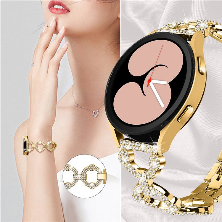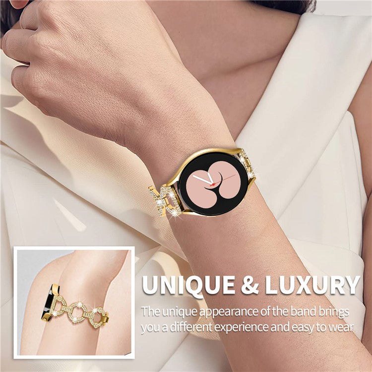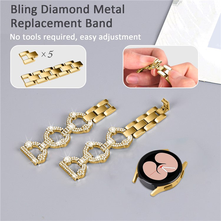 For Samsung Galaxy Watch 5 Active 40mm / 44mm / Watch 5 Pro 45mm / Watch 42mm Bling Watch Band 20mm Rhinestone Decor Replacement Metal Strap - Gold