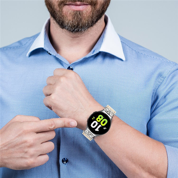For Samsung Galaxy Watch FE 40mm / Watch4 Active Classic / Watch 5 Pro Genuine Cow Leather Smart Watch Strap (Silver Buckle) - Beige
