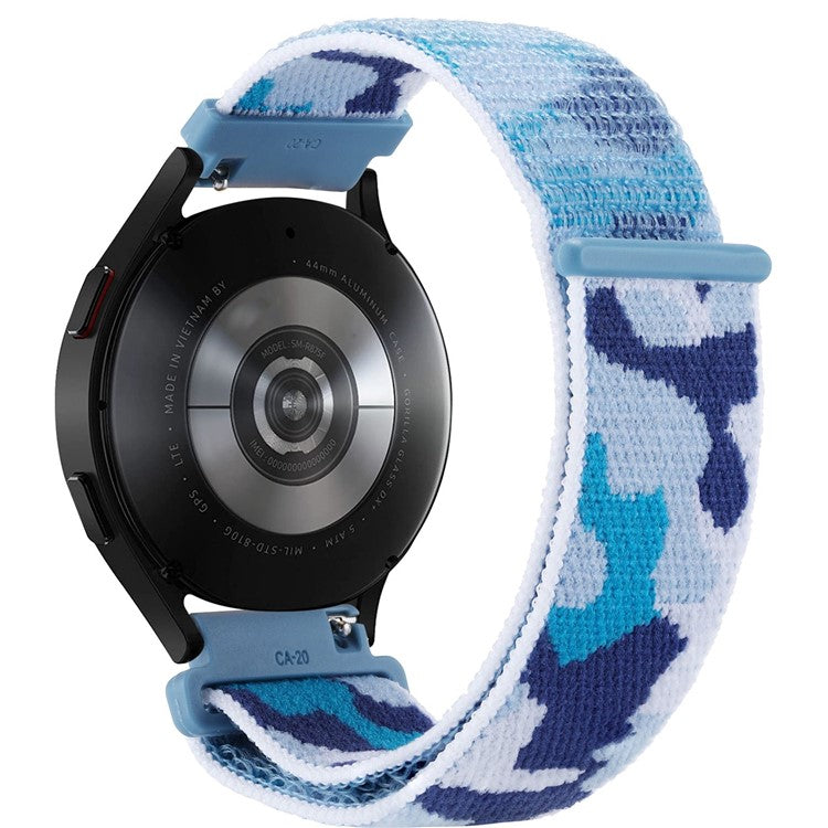 For Samsung Galaxy Watch3 45mm / Huawei Watch GT 3 Pro 46mm Watch Band 22mm Camouflage Nylon Adjustable Loop Wrist Strap - Blue