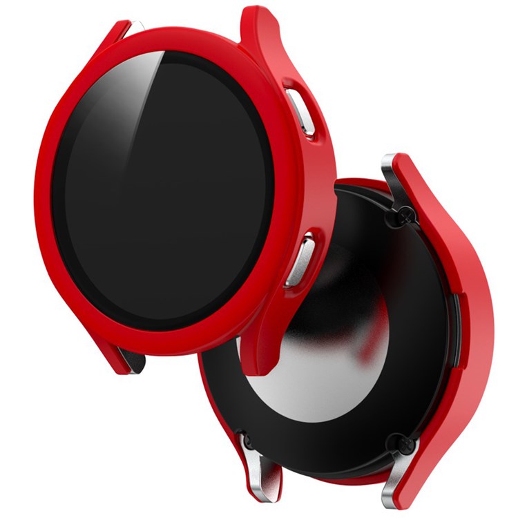 For Samsung Galaxy Watch4 44mm Anti-Scratch Matte PC Case with Tempered Glass Screen Protector Anti-Drop Smart Watch Cover - Red
