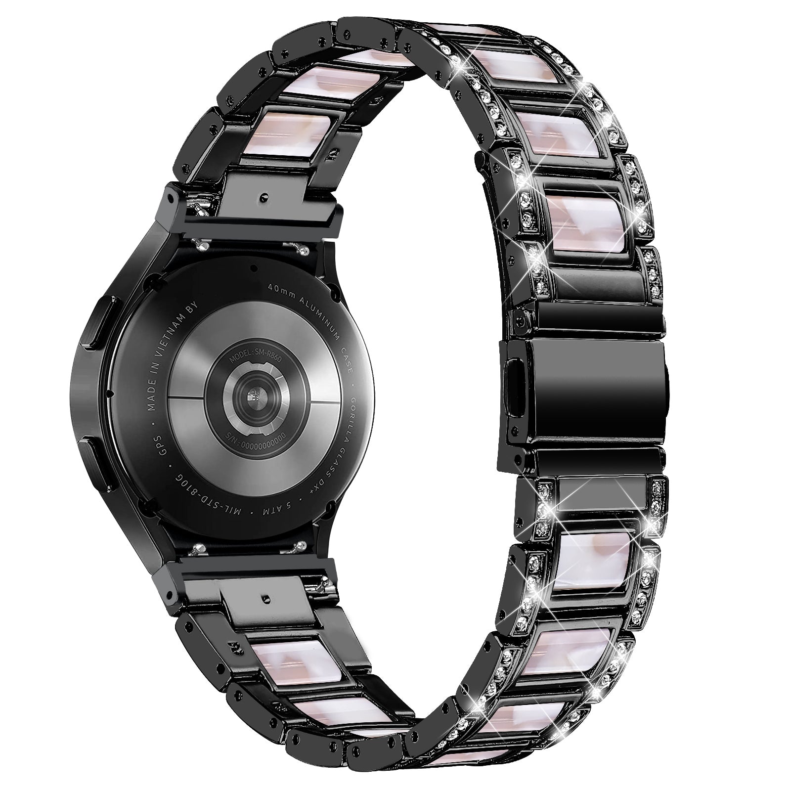 for Samsung Galaxy Watch4 Active 40mm/44mm/Watch4 Classic 42mm/46mm Rhinestone Decor Stainless Steel Resin Watch Band with Watch Strap Adapter - Black/Pink Mix