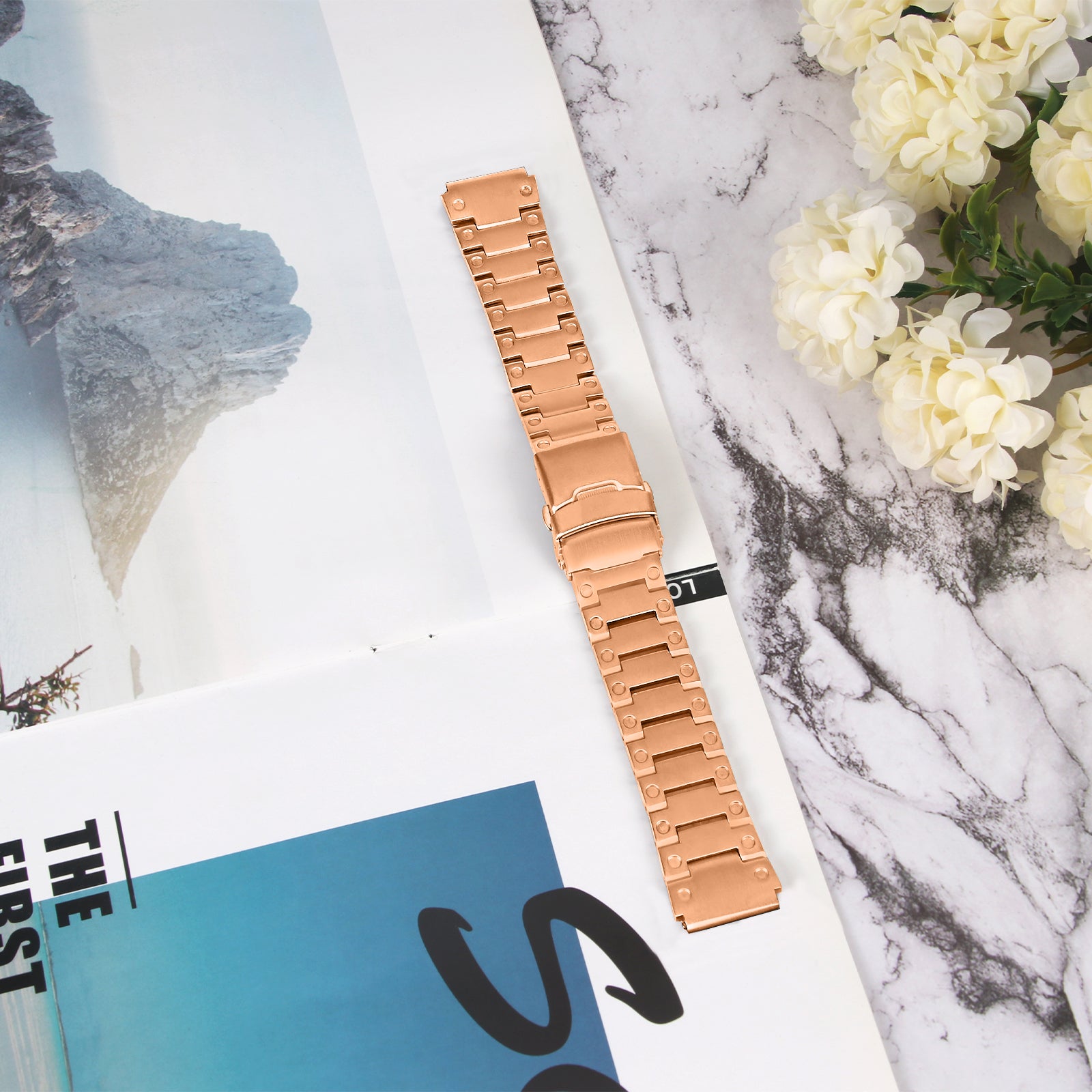 For Samsung Galaxy Watch4 Active 40mm 44mm / Watch4 Classic 42mm 46mm Smart Watch Strap 20mm Stainless Steel Watchband - Rose Gold