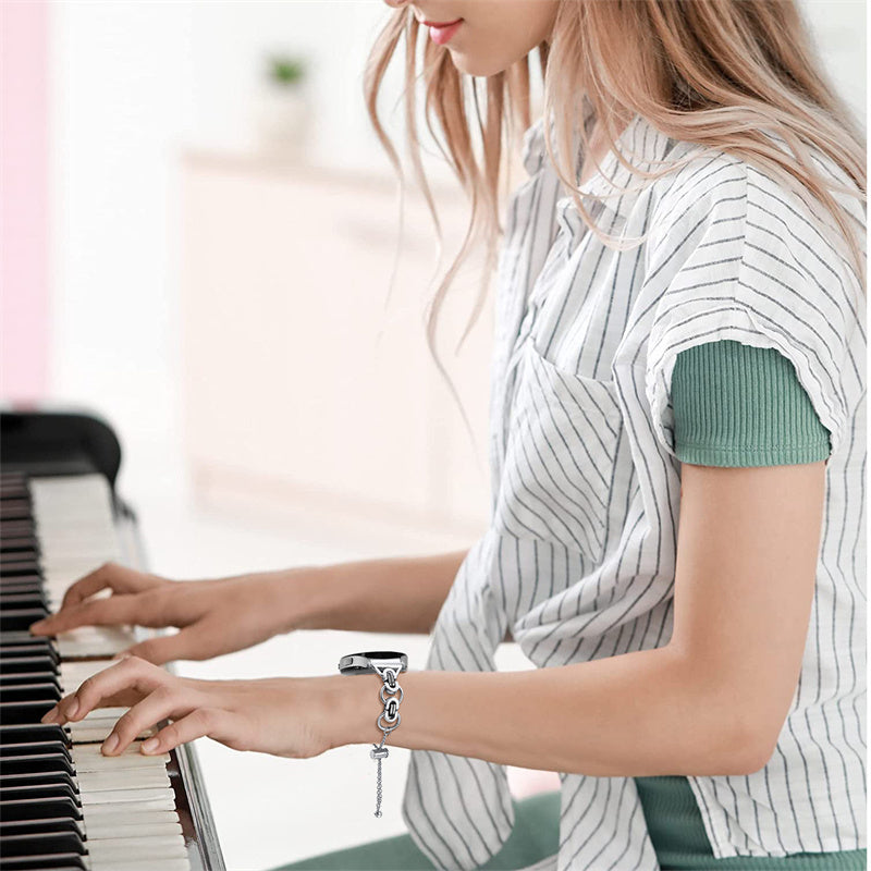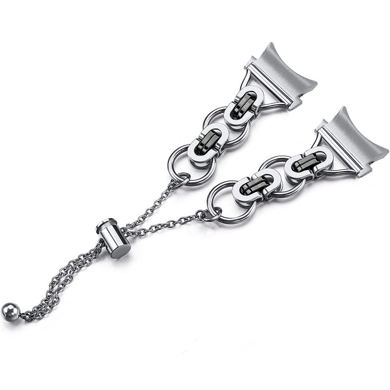 for Samsung Galaxy Watch4 Active 40mm 44mm/Watch4 Classic 46mm 42mm Bracelet Wrist Strap Stainless Steel Bead Decor Smart Watch Band - Silver and Black