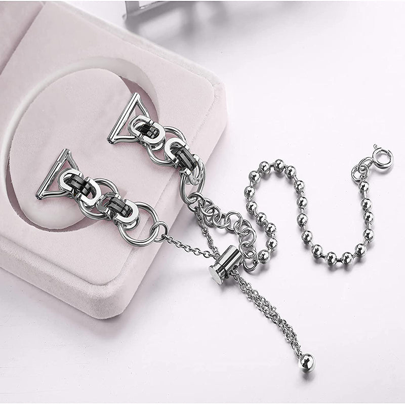 for Samsung Galaxy Watch4 Active 40mm 44mm/Watch4 Classic 46mm 42mm Dual Circle Hollow Out Bead Decor Watch Band Stainless Steel Bracelet Wristband Strap - Silver and Black