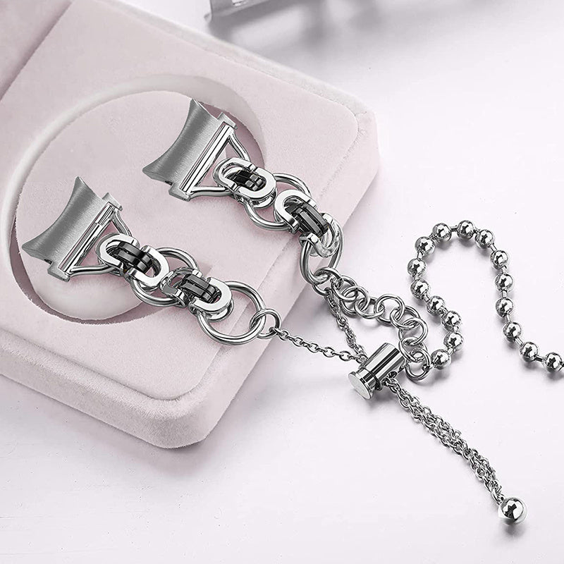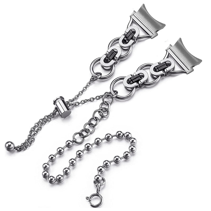 for Samsung Galaxy Watch4 Active 40mm 44mm/Watch4 Classic 46mm 42mm Stylish Bead Decor Dual Circle Watch Band Stainless Steel Bracelet Wristband Strap - Silver and Black