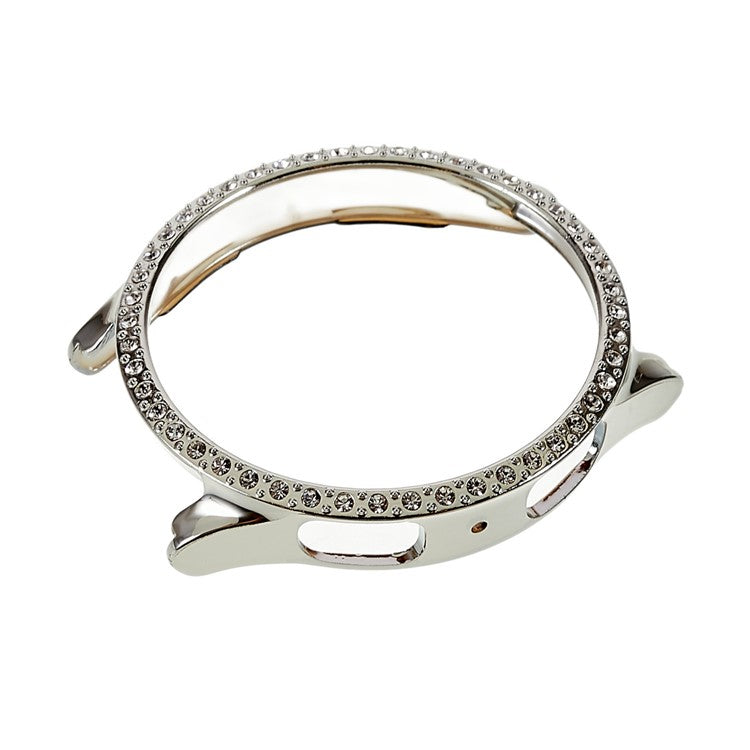 For Samsung Galaxy Watch5 40mm Hard PC Electroplating Bumper Frame Rhinestones Decor Shockproof Hollowed-out Protective Cover - Silver