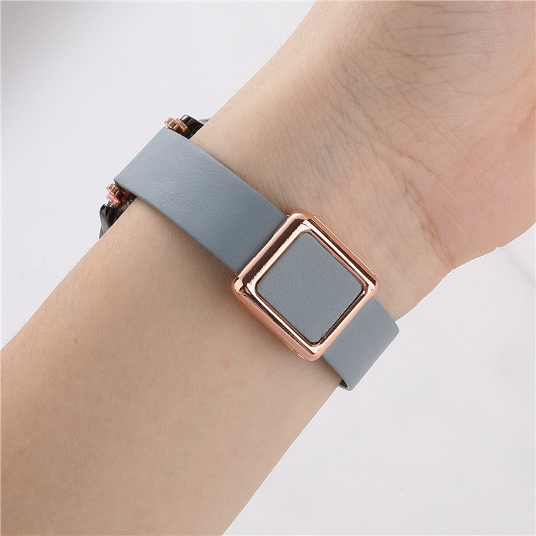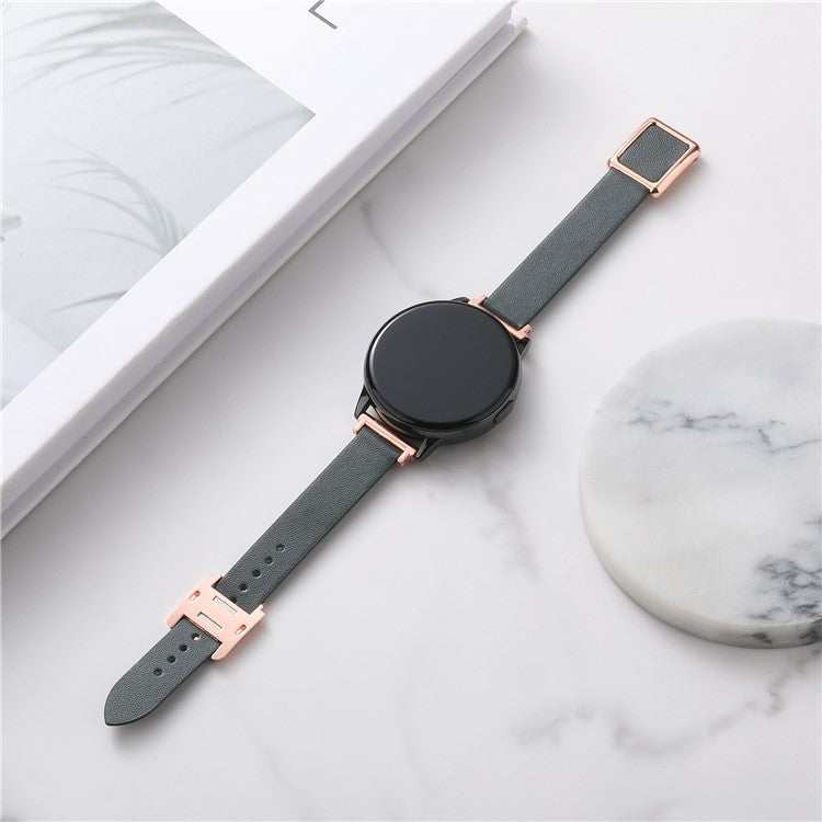 For Samsung Galaxy Watch6 Classic 47mm 43mm Watch Band 20mm Leather Strap with Magnetic Folding Buckle - Dark Green / Rose Gold Buckle