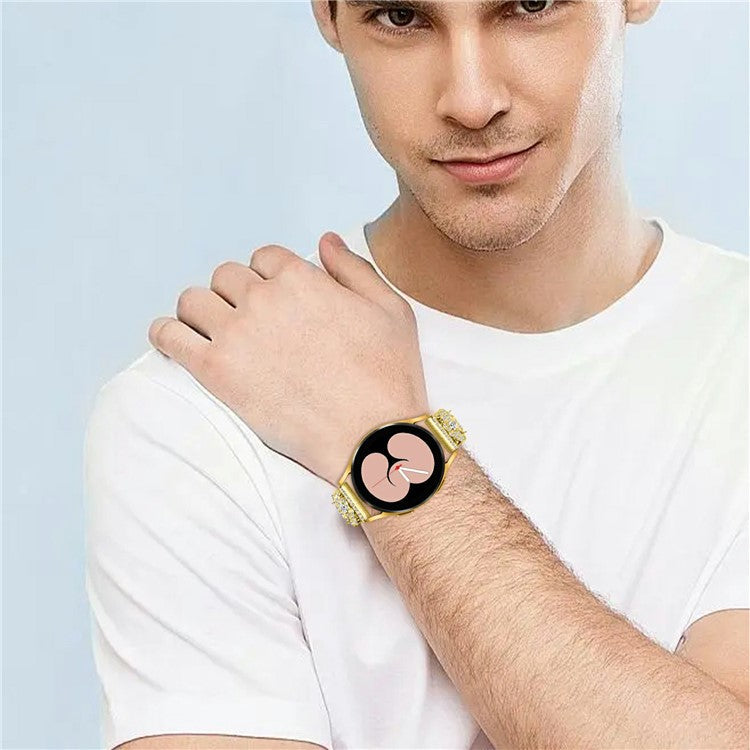 For Samsung Galaxy Watch7 44mm / 40mm Watch Band Four Leaf Clover Rhinestone Decor Smart Watch Strap - Gold