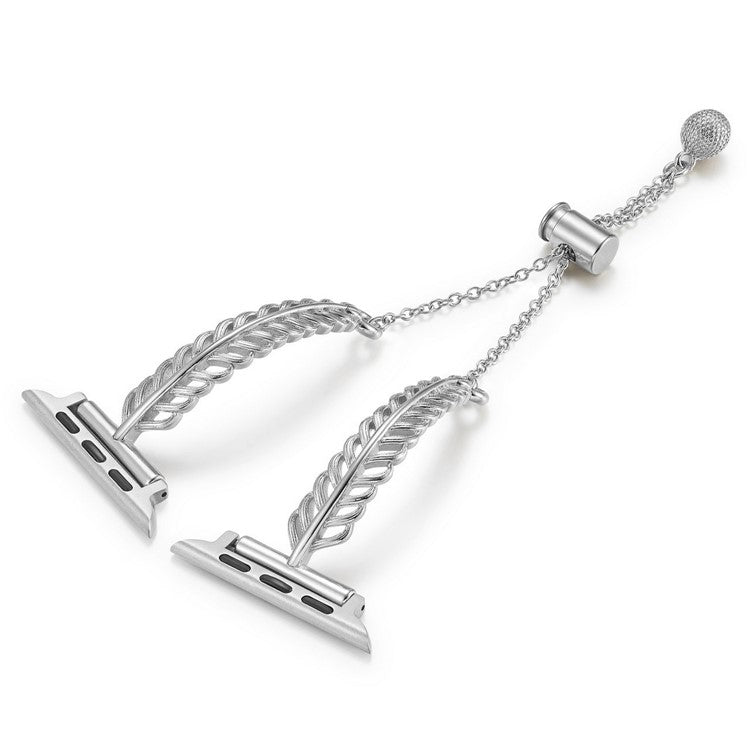 KALEBOL Feather Shape Watch Band for Apple Watch Series 10 9 8 7 SE 6 5 4 3 2 1 42mm 41mm 40mm 38mm Zinc Alloy Wrist Strap - Silver