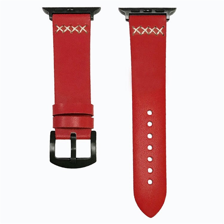 KALEBOL For Apple Watch Series 10 42mm / 9 8 7 41mm / SE (2023) SE (2022) SE 6 5 4 40mm / 3 2 1 38mm Cross-Stitch Leather Watch Strap - Red