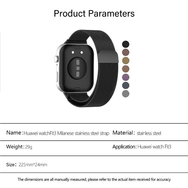 KALEBOL For Huawei Watch Fit 3 Milanese Stainless Steel Watch Band Magnetic Wrist Strap - Gold