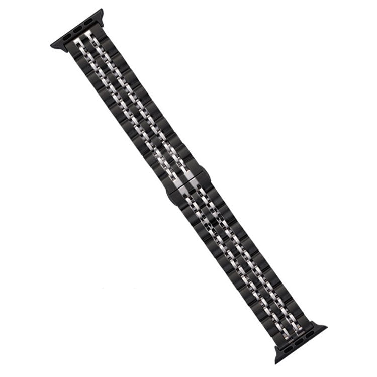 KALEBOL Stainless Steel Band for Apple Watch Series 10 Ultra 9 8 7 SE 6 5 4 3 2 1 46mm 49mm 45mm 44mm 42mm Butterfly Buckle Strap - Black+Silver