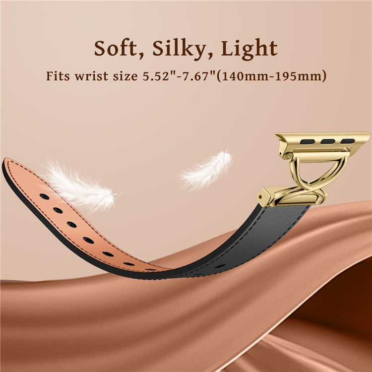 Leather Band For Apple Watch Series 10 42mm / 9 8 7 41mm / 6 5 4 SE (2023) SE (2022) SE 40mm / 3 2 1 38mm Electroplated Buckle Watch Strap - Black+Gold
