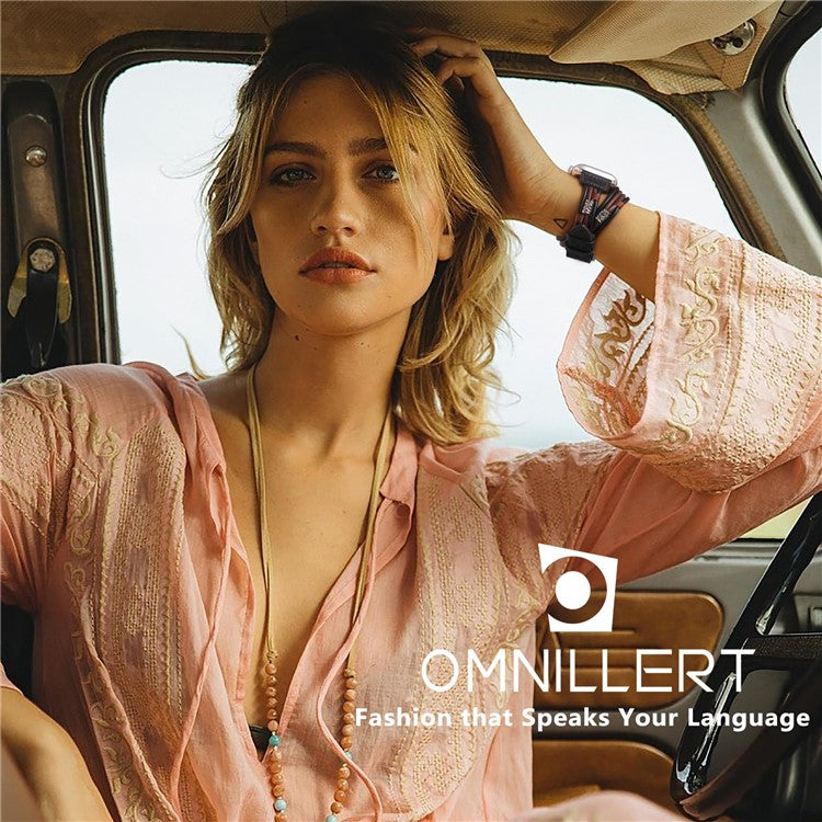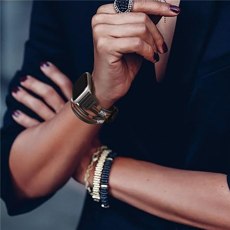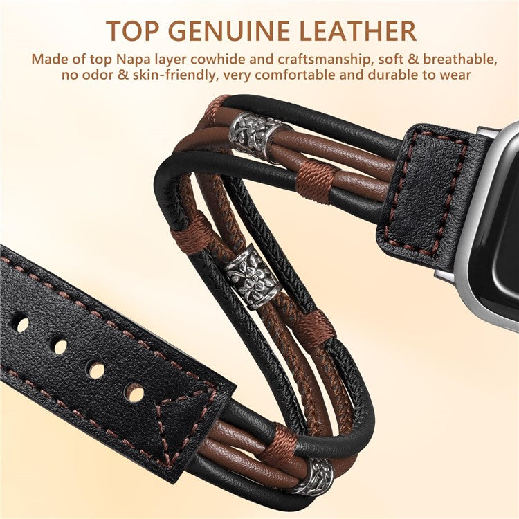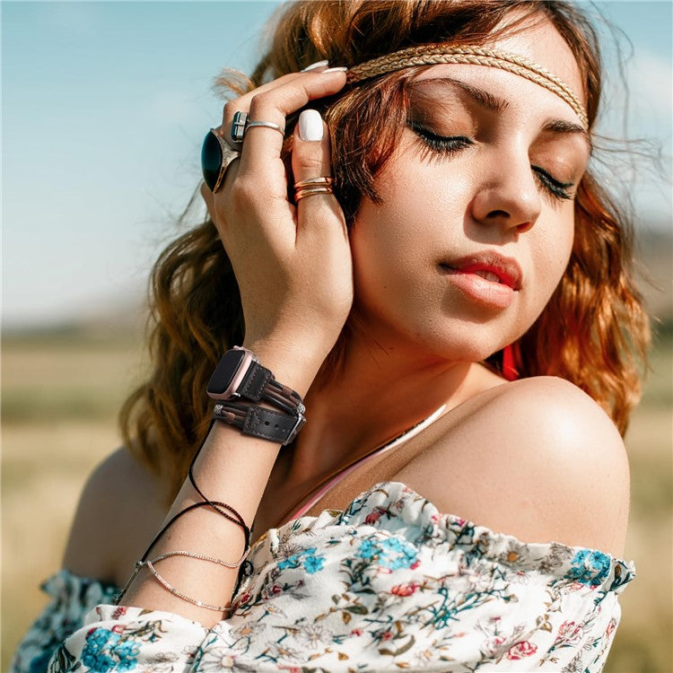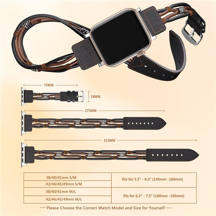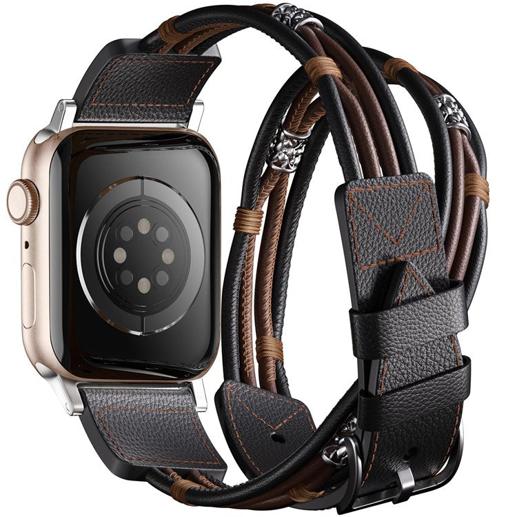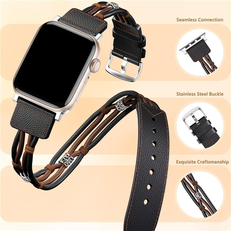 M / L Size Ethnic Style Strap for Apple Watch 10 46mm / Ultra 2 / Ultra 49mm / 9 8 7 45mm / SE (2023) SE (2022) SE 6 5 4 44mm / 3 2 1 42mm Cowhide Watch Band - Black