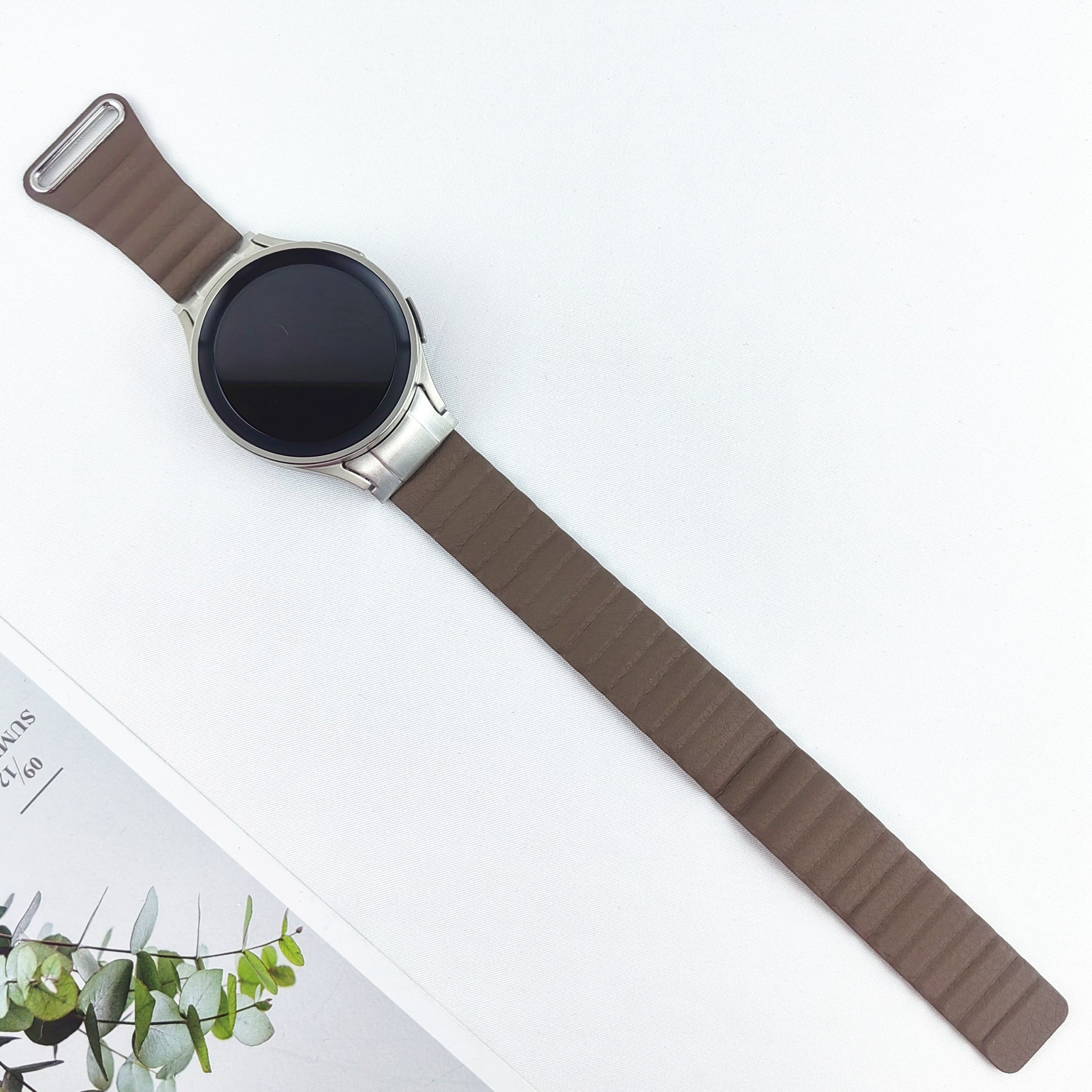 Magnetic Watch Band for Samsung Galaxy Watch6 40mm 44mm / Watch6 Classic 43mm 47mm / Watch 5 40mm 44mm / Watch4 40mm 44mm Genuine Leather Strap with Connector - Tan