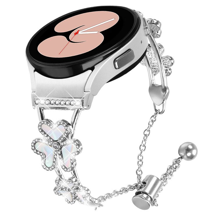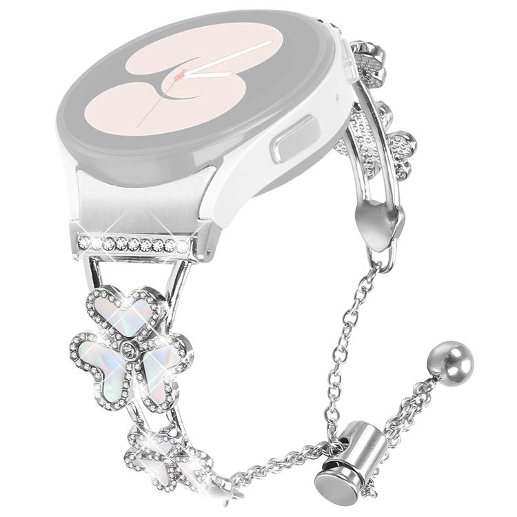 Metal Band with Quick Release Connector For Samsung Galaxy Watch5 / Watch4 40 / 42 / 44 / 45 / 46mm Heart Clover Decor Watch Strap - Silver