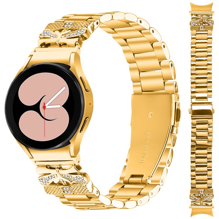 Metal Strap with Connector for Samsung Galaxy Watch6 40mm / 44mm / Watch6 Classic 43mm / 47mm Butterfly Rhinestones Decor Watch Band - Gold