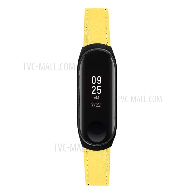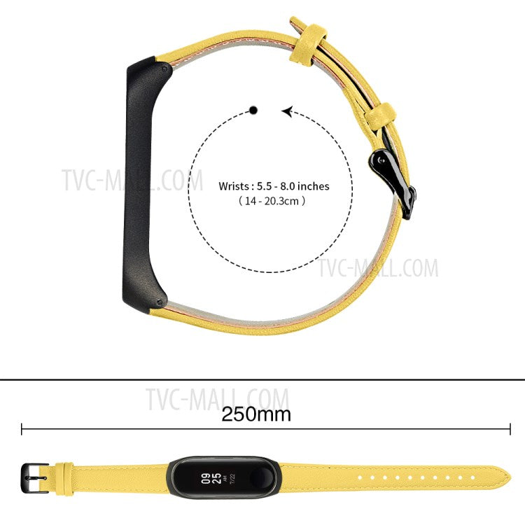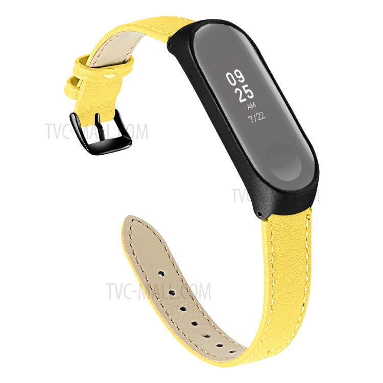 Quality Genuine Leather Watch Band Strap [Black Frame] for Xiaomi Mi Band 5 - Yellow
