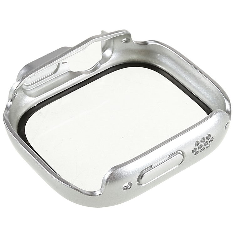 RURIHAI For Apple Watch Ultra 2 49mm / Ultra 49mm PC Protective Case All-around Bumper Protective Cover with Silk Printing HD Tempered Glass Screen Protector - Silver