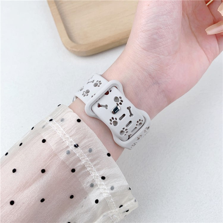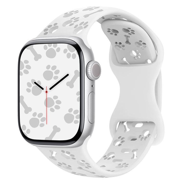 Silicone Band For Apple Watch Series 10 9 8 7 SE 6 5 4 3 2 1 42mm 41mm 40mm 38mm Dog Paw Bone Design Watch Strap - White