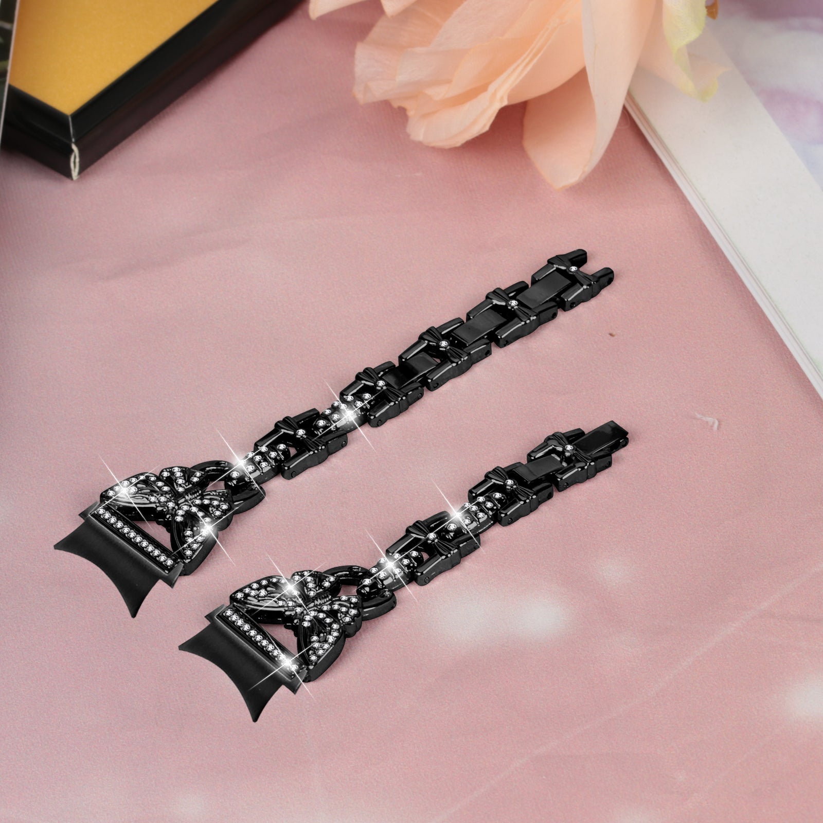 Stainless Steel Band for Samsung Galaxy Watch4 40mm 44mm / Watch4 Classic 42mm 46mm / Watch 5 40mm 44mm , Rhinestone Decor 20mm Watch Strap with Connector - Black