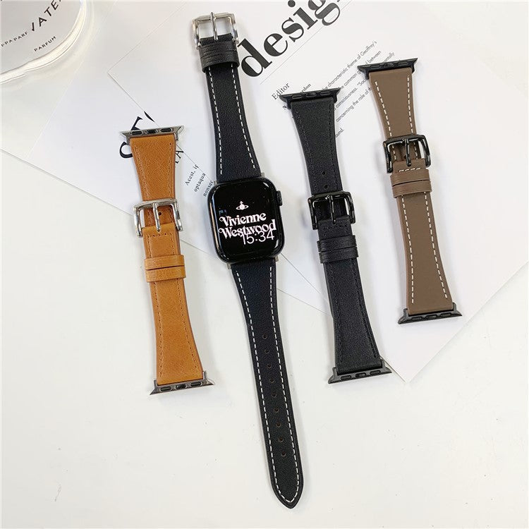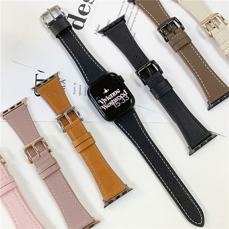 Watch Band for Apple Watch Series 10 42mm / 9 8 7 41mm / SE (2023) SE (2022) SE 6 5 4 40mm / 3 2 1 38mm Genuine Cow Leather Watch Strap - Lotus Pink