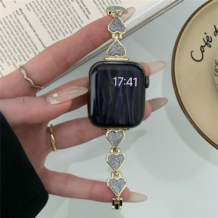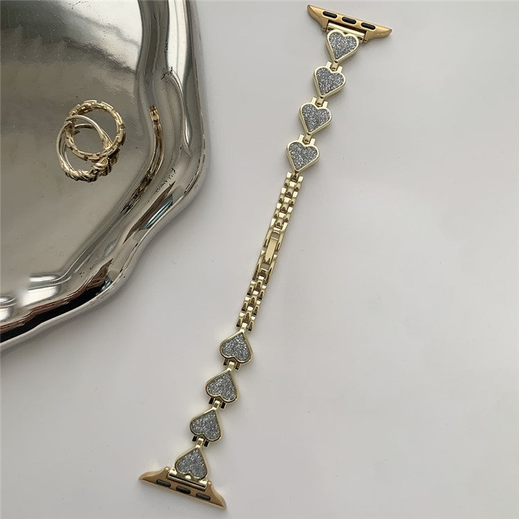 Zinc Alloy Band for Apple Watch 10 46mm / Ultra 2 / Ultra 49mm / 9 8 7 45mm / SE (2023) SE (2022) SE 6 5 4 44mm / 3 2 1 42mm Heart Design Strap - Gold