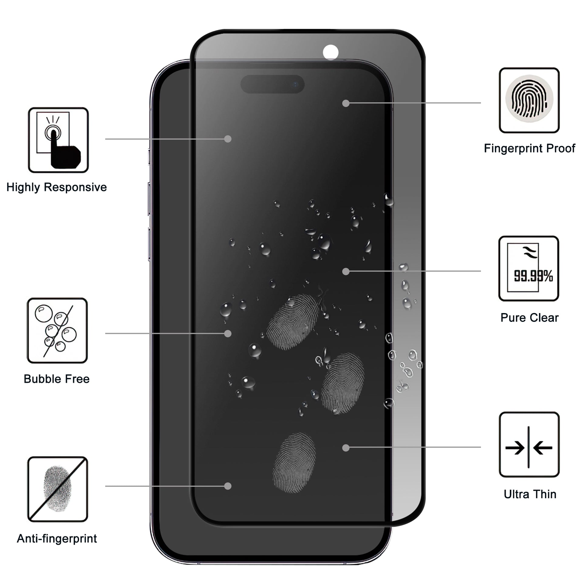 Uniqkart for iPhone 15 Pro Anti-spy Tempered Glass Phone Screen Protector 2.5D Arc Edge Anti-explosion Film